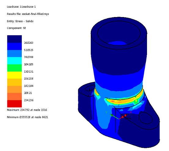 소켓 내부 벽면에 분포하중으로 작용하도록 소켓 내부를 분리된 별도의부재로 채워 하단으로 이동시켜 내부에 접촉되면서 압력하중으로 작용하도록 설정
