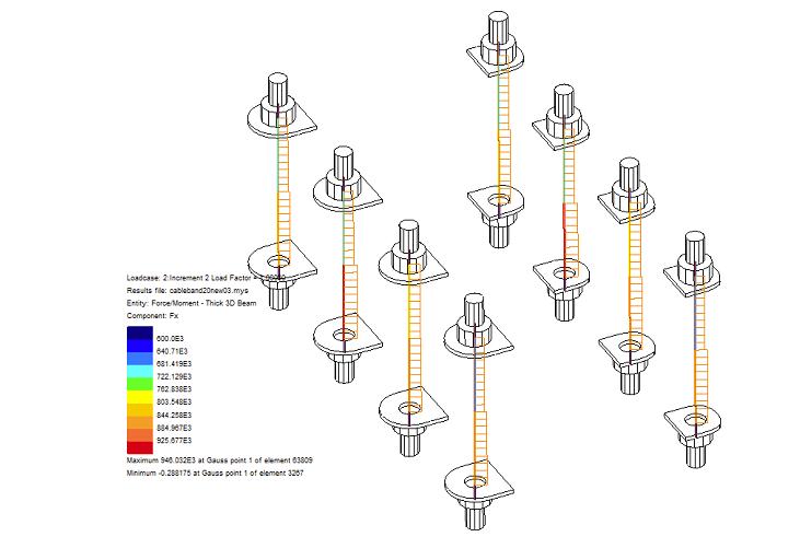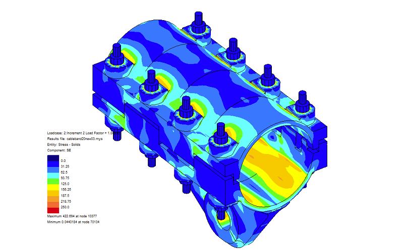 주 케이블과 행어소켓을 연결하는 케이블 밴드는 유한요소 해석을 통하여 본체의 응력 검토 및 행어하중으로 인한 케이블과 본체의 탈락에 따른 슬립의 가능성 검토