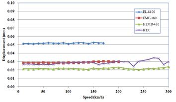 교량상판의 속도별 면틀림 (mm)