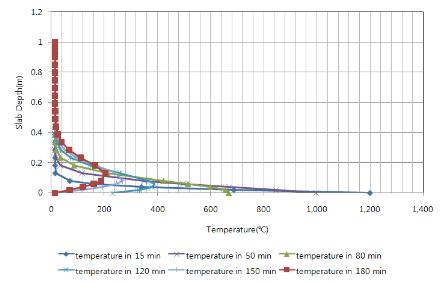 터널라이닝의 철근 최고온도 도달시 온도분포 의한 온도분포