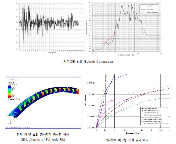 경인운하 굴포천에 건설 예정이었던 일면식 아치교인 굴포교에 대하여 유한요소해석을 통하여 설계에 대한 검증을 수행함으로 상부구조에 대한 검토와 구조 각 부분에 대한 자세한 상세해석을 통하여 구조물 국부에 발생하는 응력집중으로 인하여 교량 전체에 미칠 영향에 대한 검토와 함께 교량 전반에 대한 구조안정성 검토를 수행하였다.