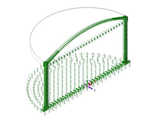 구조해석 경계조건 : 파일 배치에 따라 계산된 수직, 수평방향 반력계수를 이용한 스프링 구속 적용