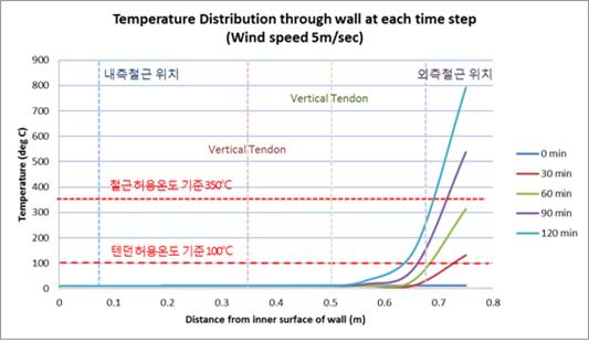 LNG 탱크 벽체 단면의 온도 분포 (풍속 5m/sec)