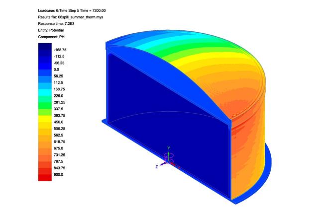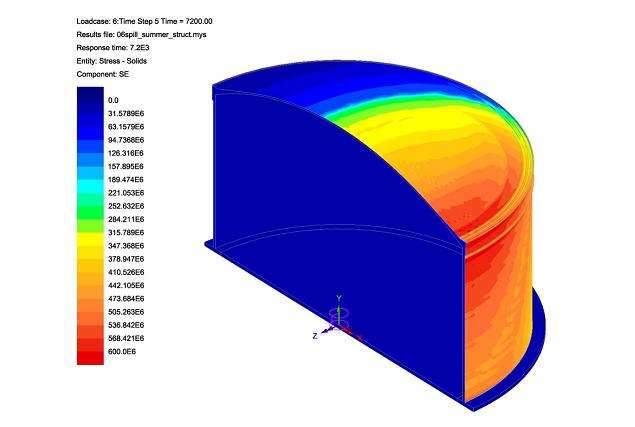 인접 탱크 화재가 2시간 지속되었을 때의 구조물 온도 분포 및 단면력 검토