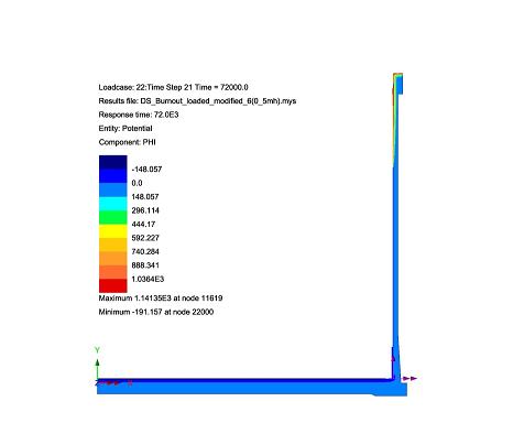 화염온도 : 1127 ℃ : 높이에 따라 변화하는 대류계수 및 온도하중을 variation 기능을 사용하여 적용