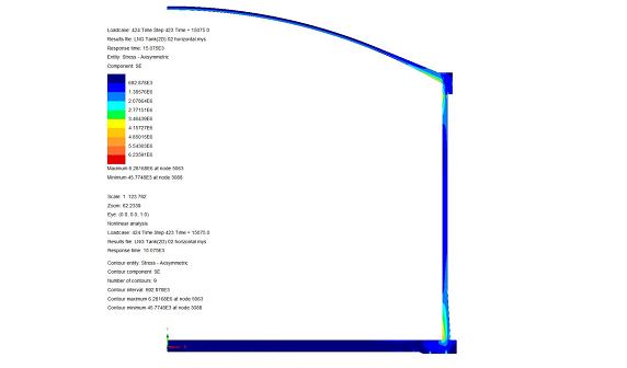LNG 탱크의 응력 분포도 (SE, Long-term)