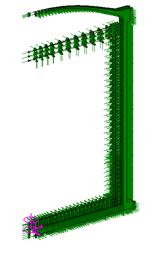 구조해석 경계조건 : 파일 배치에 따른 연직 및 수평방향 지지력을 스프링 상수로 하는 스프링 지점 구성 연속면의 직각방향으로 경계조건 구성