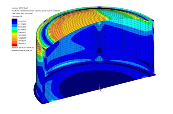 LNG 탱크의 응력 분포도 (SE, 풍하중)