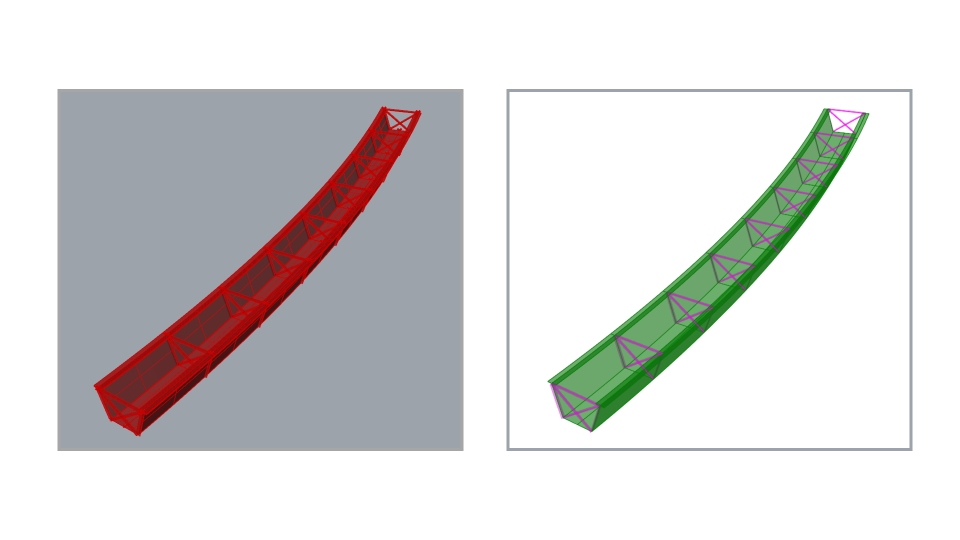Grasshopper에서 실행하면 변수 입력만으로 Curved tub girder 에 대한 LUSAS 구조해석 모델을 생성합니다.