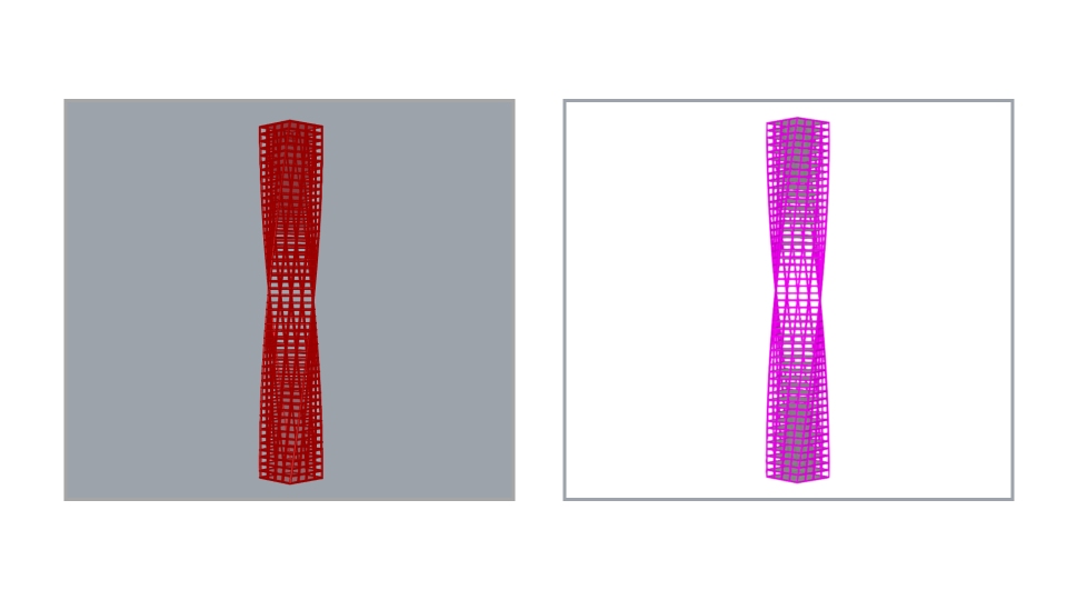 Grasshopper에서 실행하면 변수 입력만으로 Twisting tower 에 대한 LUSAS 구조해석 모델을 생성합니다.