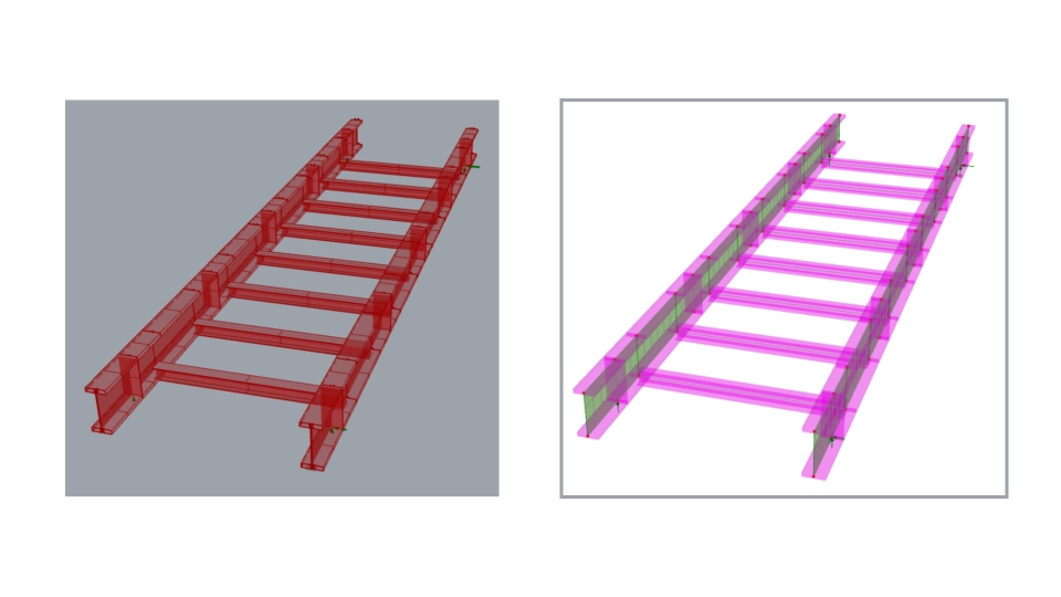 Grasshopper에서 실행하면 변수 입력만으로 Twin girder bridge with vehicle load optimisation 에 대한 LUSAS 구조해석 모델을 생성합니다.
