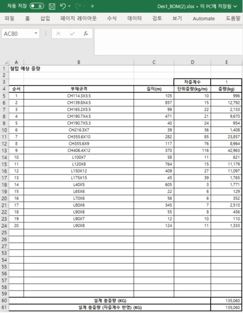 설계 결과 및 물량 보고서