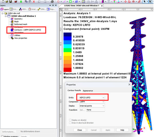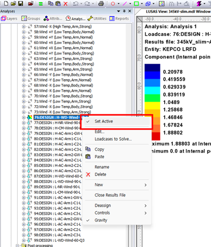 이 대화창을 설정한 후에는 화면상에 Contour, Value를 출력할 때 설계검토 결과를 선택할 수 있도록 KEPCO LRFD 항목이 추가됩니다.