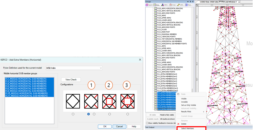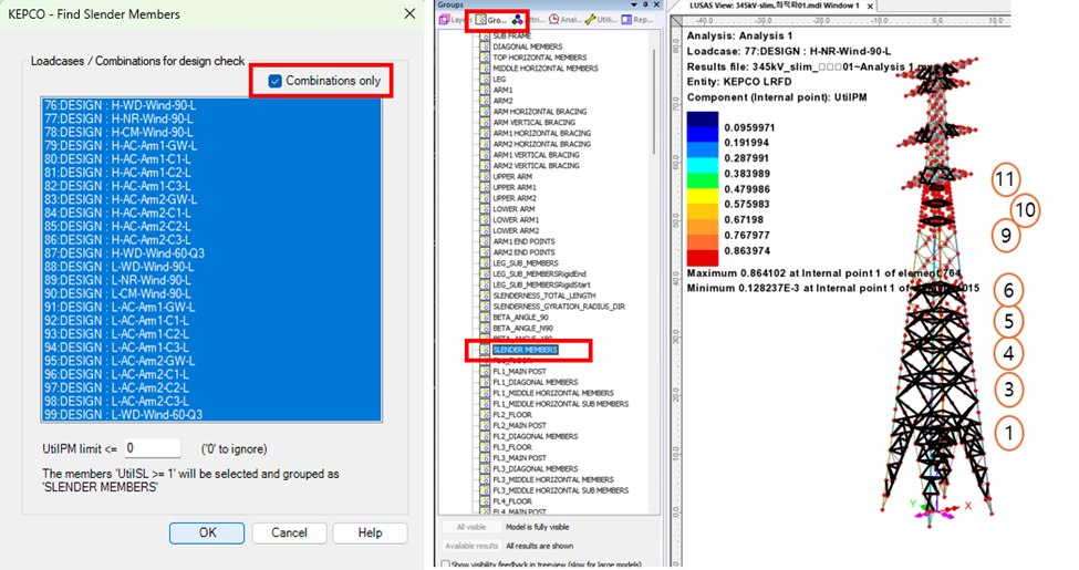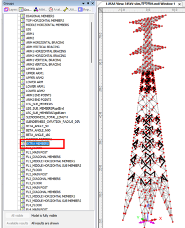 세장비 기준을 만족하지 못하는 부재가 선택되어 SLENDER MEMBERS 라는 그룹에 저장됩니다.