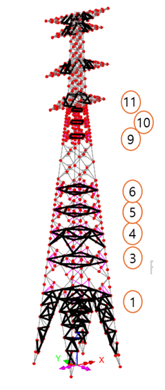 보조재 추가로 일부 부재는 세장비를 만족하게 되었으나, 외곽선을 구성하는 수평부재는 여전히 세장비 기준을 초과하므로 단면 개선이 필요함을 알 수 있습니다.