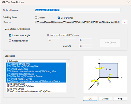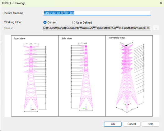 하중케이스별로 달라지는 이미지 (하중재하도, 단면력 콘타 등) 등 보고서 작성에 필요한 모델 관련 이미지를 하중케이스별로 일괄 생성합니다.