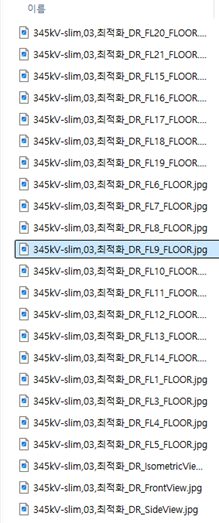 정면도, 측면도, 후면도와 각 층별 도면을 출력합니다.