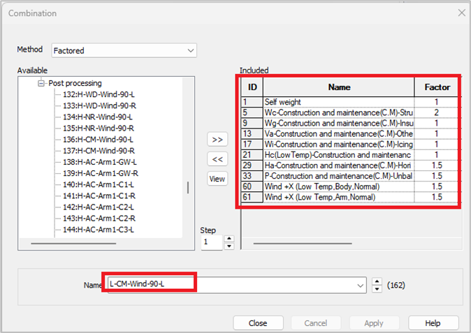 생성된 하중조합을 더블클릭하면, 하중조합에 적용된 하중케이스와 하중계수를 확인할 수 있습니다.