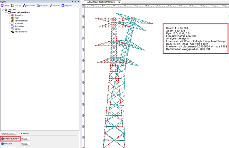 좌측 하단의 ‘Window summary’를 체크하면 최대변위값이 함께 출력됩니다.