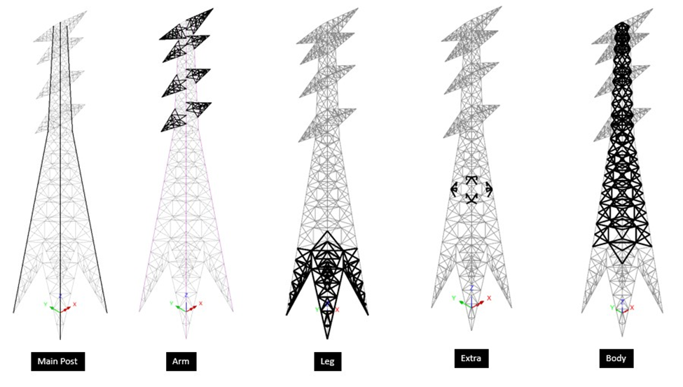Main Post는 주주재를 의미하며, Arm, Leg는 암과 레그를 구성하는 부재를 총칭합니다.