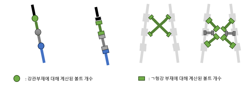 - ㄱ형강은 양끝단은 한 쪽에만, 나머지는 양쪽에 볼트가 필요한 것으로 보아 합산