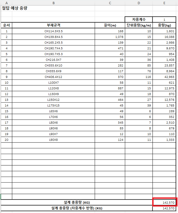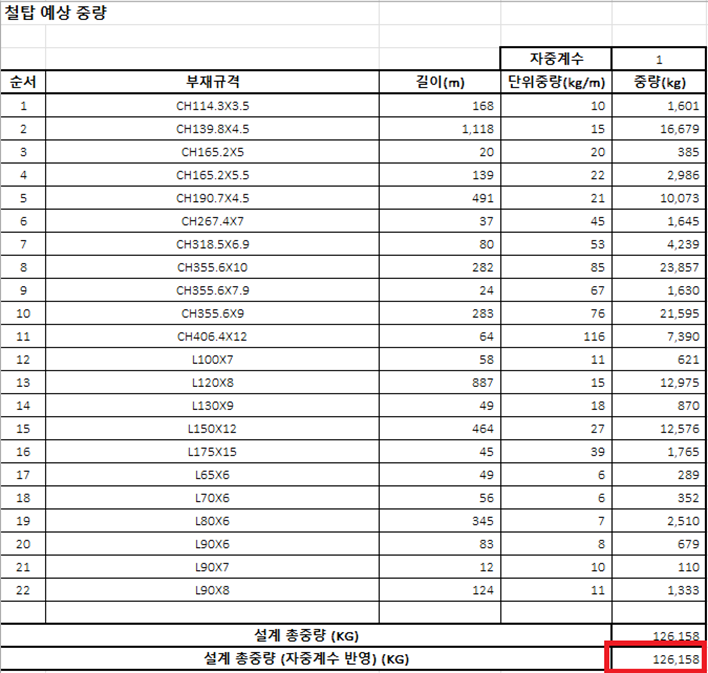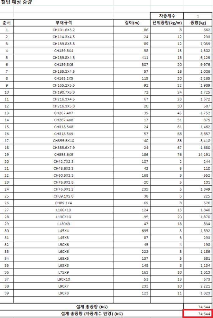 부재 단면설계 최적화 전 물량산출