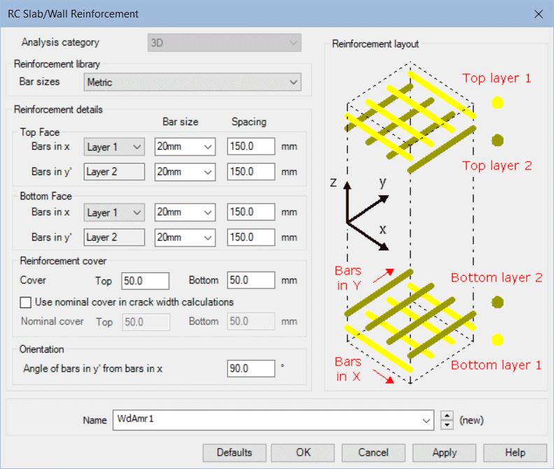 - 모델의 다양한 영역에서 사용하기 위해 상단 및 하단(또는 근접 및 원거리) 레이어에 대해 여러 철근 배열을 정의합니다.