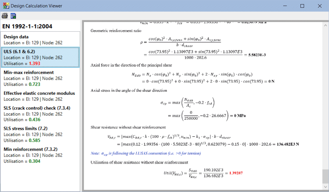 RC 슬래브 / 벽 설계 소프트웨어 옵션은 광범위한 국제 기준에 따른 종합적인 설계 검토를 수행합니다. 이 소프트웨어는 휨, 비틀림, 평면 내 효과, 전단, 응력 한계, 최소 및 최대 철근 면적, 균열 폭 또는 간격 고려 사항에 기반한 강도/ULS 및 SLS 검사를 포함합니다. 사용자 각 설계 검토에 대해 하중 조합을 정의하고, 콘타 형태 및 표 형태로 결과를 정리하고 보고서에 추가할 수 있습니다.