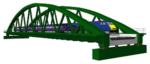 | 이동 하중 및 이동 질량 옵션은 교량에 대한 동적 응답 해석을 다양한 차량 또는 기차 속도로 수행할 수 있게 하여, 교량을 가로지르는 일정한 차량 운동을 유지하고 모달 계산 간 시간 간격만 조정합니다. 이동 하중 해석에서는 해석 동안 하중이 일정하게 유지됩니다. 이동 질량 해석에서는 질량-스프링-댐퍼 시스템의 동적 반응이 관성 효과로 인해 기반 구조에 작용하는 동적 힘을 수정합니다. 두 옵션 모두 IMDPlus 기능을 활용하여 각 수행에서 다양한 차량 속도에 대한 계산이 가능합니다. 단일 속도에 대해 전체 시간 기록 출력을 제공하거나, 여러 속도에 대해 최대 응답 출력을 제공할 수 있습니다. |