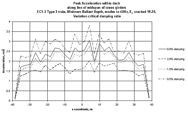 결과는 LUSAS의 다양한 그래프 플로팅 기능을 사용하거나 표준 등고선, 벡터 또는 최대 값 기능을 사용하여 표시할 수 있습니다. 개별 노드 또는 부재에 대한 결과를 시각화하거나, 단일 IMDPlus 해석에서 포함된 노드 또는 부재의 선택을 통해 합산, 평균 또는 외란된 결과를 생성할 수 있습니다. 이동 질량 해석에서 질량-스프링-댐퍼 시스템의 결과를 얻어 차량 역학 평가를 지원할 수 있습니다. IMDPlus 내에서 감쇠와 ‘시간 간격’이 지정되므로, 이러한 매개변수가 구조적 응답에 미치는 영향을 평가하기 위해 일련의 계산 비용이 많이 드는 비정상 동적 해석을 수행할 필요가 없습니다.