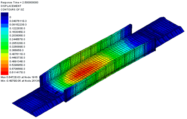 - 응답 시간 기록 – 변위 / 속도 / 가속도 시간 기록 / 동적 증폭 계수 / 노드 또는 출력 힘에 대한 반응 / 응력 / 변형률 시간 기록. 이동 질량 차량의 변위 / 속도 / 가속도 / 힘.