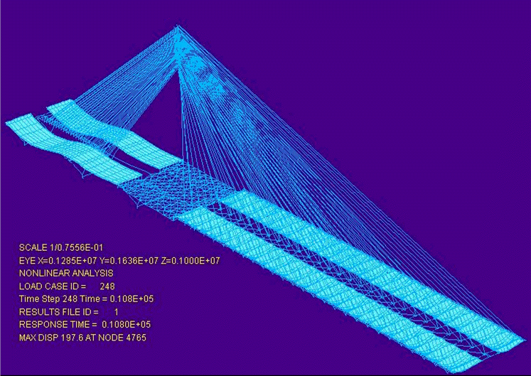 초기 제안된 I95 미시시피 강 교량는 일리노이주와 미주리주를 연결하는 기록적인 케이블-유지 구조로 설계되었으며, 지역 내 기존 교량의 교통 혼잡을 해소하기 위해 제작되었습니다. Missouri 및 Illinois 교통부를 위하여 Modjeski & Masters에 의해 설계되었으며, LUSAS Bridge의 단계적 시공 기능을 사용하여 800일의 시공 기간과 10000일의 크리프를 허용하는 모델링이 진행되었습니다.