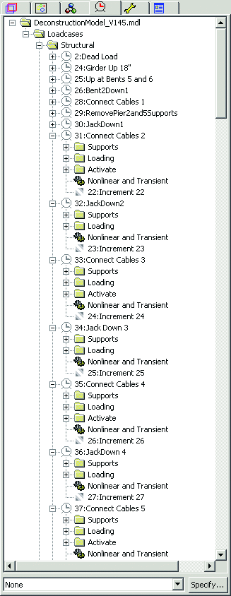 단계적 시공 모델링은 다양한 형태의 교량 설계 및 시공에 필수적입니다. 이는 세분화된 분석을 수행하는 것과 관련이 있으며, 점진적으로 발주된 세그먼트 구조 상자 거더 교량을 모델링하거나 케이블이 있는 교량 및 현수교의 케이블 또는 행거 교체 모델링, 또는 해체 과정을 모델링하는 데 사용됩니다.