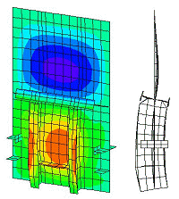 인트에 대한 해석결과가 BD21/97 조항의 지표에 의해 기대된 용접부에 대한 항복응력에 대응되는 값이 제한되어 있었다. 조인트의 보강재는 조인트 요소 내에서 연구 자료를 통해 인정되고 있는 값인 0.10mm 보다 용접 변형 결과값에 해당된다. 모멘트, 전단부, 쉘모델 끝단부의 비틀림, critical loadecase에 대한 격벽부 밑단의 반응은 선형 빔해석을 사용하여 결정지었다. 이들 하중은 집중된 노달 하중으로서 모델에 적용되었다. 하중 데이터셑은 변화를 사용하여 특성화되었고, web의 평면을 구부림으로써 야기되는 선형 응력 배치의 투입량을 단순화하였다. 결과적으로 변형된 메쉬는 구조물의 하중과 함께 도표화하였다.