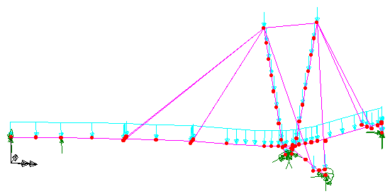LUSAS Bridge해석 프로그램을 이용한 3차원 정적/동적 해석은 설계를 용이하게 해 주었다. Bar와 thick beam 요소를 사용하여 다양한 구조적 부재를 모델링 하였다. 빔 요소로부터 힘과 모멘트가 추출되었고 BS5400 Part3 설계 규정과 비교할 수 있도록 교량 상판에서의 응력값으로 환산하였다. 바람과 보행자의 진동에 따른 교량의 적합성을 검사하기 위해 고유값 추출도 수행되었다.