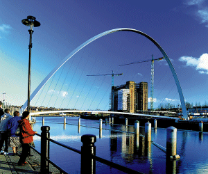Gateshead Millennium Bridge는 Tyne강을 가로지르는 교량으로 경관이 아주 미려하다.