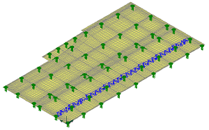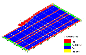 1800 피트 길이의 고가교 구조물은 서로 신축이음장치로 연결된 9개의 섹션으로 구성 되어있다. 결과적으로 독립된 LUSAS 유한요소 모델이 각 단면에 대해 만들어졌다. 교량 상판의 단면은 3차원 쉘 요소를 사용하여 모델링하고, 편심을 부여함으로써 다양한 두께의 슬라브와 리브를 할 수 있었다. 교각 위의 교좌 받침을 모델링 하기 위해서 스프링 구속이 지압면적이 정의되는 경계를 따라 4개지점에 사용되었다. 이렇게 함으로써 기둥에 대한 최대 부 모멘트를 제거할 수 있었고, 한 지점에 구속을 지정한 경우와 비교하였을 때 평균 25% 감소가 되는 결과가 나타났다. 포스트 텐션은 프리스트레스 손실을 설명하고 있는 등가하중을 적용하여 모델링되었다. 이들 하중은 종방향의 텐돈의 포스트텐션 응력을 자동적으로 해석한 스프레드시트 매크로를 사용하여 생성되었다. 몇가지 정적 해석이 각 단면에 대한 사하중 및 활하중을 알아보기위해 수행되었다.