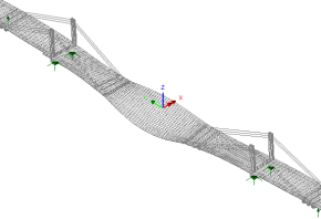 정적 해석은 횡방향 하중 효과를 조사하고, 교량 및 케이블 스테이에 유도되는 종방향 응력을 조사했습니다. Pontex에게는 오프센터 차량 하중으로 인한 데크 변위를 조사하는 것이 흥미로웠으므로 다양한 적용된 하중 및 하중 조합으로 인해 발생한 변위 플롯이 몇 가지 생성되었습니다.