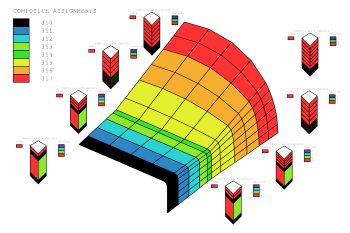 신형 날개 설계를 분석하기 위해 LUSAS Composite를 사용하여 3D 유한 요소 모델이 DXF 및 추가 좌표 데이터를 사용하여 생성되었습니다. 제조 방법에 맞추어 모델은 선단 섹션, 스파 섹션 및 선단과 스파 섹션을 결합하는 스트립 섹션의 3개 주요 부품으로 나누어졌습니다. 지정된 복합재 구조를 달성하기 위해 각 모델의 3개 주요 부분에 대해 17개 서로 다른 기하학 및 복합재 데이터 세트가 생성되었으며, 각 복합재 데이터 세트는 적층 순서, 재료 방향 및 층의 상대 두께에 대한 상세 정보를 포함하고 있습니다. LUSAS Composite를 사용함으로써 적층은 분석할 구성 요소와 독립적으로 정의할 수 있으며, 적층의 방향과 순서를 시각적으로 볼 수 있어 빠르고 정확한 모델 정의가 가능합니다.