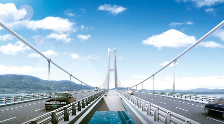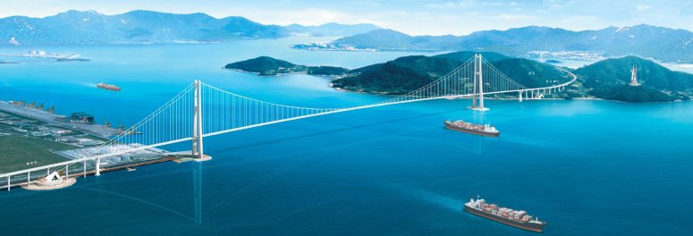 이 교량은 357.5 + 1545 + 357.5 미터의 3경간 현수교로, 총 길이는 2260 미터에 달하며, 완료 시 세계에서 네 번째로 긴 교량이 될 것입니다. 콘크리트 타워는 H형이며, 높이는 270미터로 세계에서 가장 높습니다. 해양 수면에서 데크의 아래쪽까지의 높이는 약 85미터로, 세계에서 가장 큰 컨테이너 선박이 안전하게 통과할 수 있도록 설계되었습니다. 초기 설계는 2006년에 시작되었고, 세부 설계 작업은 2007년 내내 진행되었습니다. 트윈 박스 거더 데크 조각이 모든 하중 조건에서 어떻게 작용할지를 이해하는 것은 어려웠으므로, LUSAS 교량 해석 소프트웨어가 선택되었습니다.