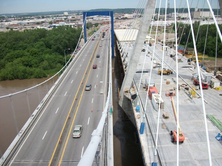 파세오 교량은 1950년대 초 하워드, 니들스, 타멘, 그리고 베르겐도프에 의해 설계되고, 1954년 아메리칸 브리지 컴퍼니에 의해 건설되었습니다. 이 교량은 캔자스 시티, 미주리에서 미주리 강 위에 I-29/35 및 주 도로 71을 횡단하는 4차선 자기 고정 현수교로, 308피트, 616피트, 308피트의 현수 경간과 90피트, 174피트의 남쪽 접근판 거더 경간, 219피트와 110피트의 북쪽 접근판 거더 경간을 보유하고 있었습니다. 교량이 처음 개통될 때, 이는 세계에서 가장 긴 자기 고정 현수교였습니다.