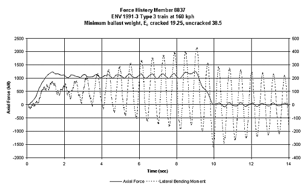주요 효과는 하중과 모멘트의 동적 증폭 및 열차 통과 시 트랙 아래에서 자갈의 불안정성을 방지하기 위해 수직 가속도가 0.35g를 초과하지 않도록 하는 것 외에도 구조적 감쇠, 강성 및 질량과 같은 매개변수 선택에 대한 해석의 민감도를 조사해야 했습니다. 이를 위해 빠른 해석 절차가 필요했습니다.