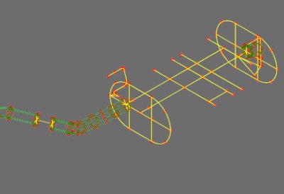 배관 및 머플러 외에도, 촉매 변환기, 배기 매니폴드 및 엔진/변속기 조립체의 강체 질량 표현을 포함한 유연한 마운트 및 배기 시스템 걸쇠를 개별적으로 정의하고 모델에 추가할 수 있습니다. 횡장착된 엔진에서 엔진과 배기 시스템 간의 “힌지”가 “토크 회전” 움직임을 분리하는 데 필요합니다. 일종의 조인트 및 벨로우즈 타입 디커플러는 배기 시스템의 동적 응답에 현저한 영향을 미치므로 신중한 모델링이 필요합니다. 벨로우즈 타입의 연결은 축 방향, 굽힘 및 전단 유연성을 갖춘 빔 요소로 표현되며, 조인트는 스프링 요소로 사용됩니다.