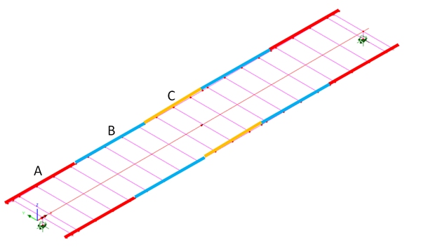 LUSAS를 사용하여 시공의 모든 단계를 나타내는 단일 3D 모델을 생성하고 지반-구조 상호작용을 모델링했습니다. 비선형 거동을 수용하는 관절 요소가 능동 및 수동 지반 압력을 모델링했습니다. 주요 longitudinal 강재 보를 웹과 플랜지의 두께를 최적화하기 위해 A, B, C, B, A의 다섯 세그먼트로 나누었습니다.