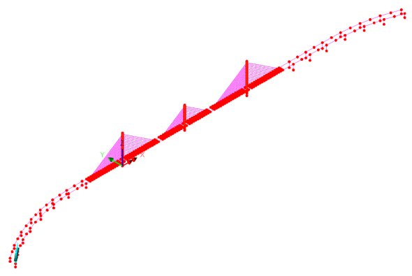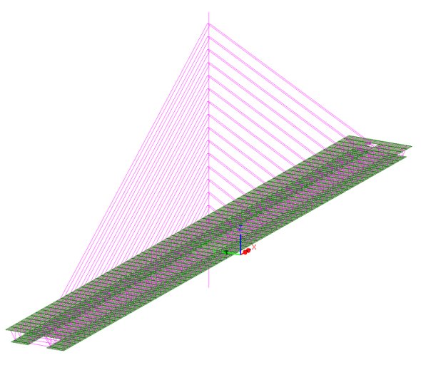 단일 타워의 자세한 단계적 시공 모델은 교량 데크를 시공하고, 스테이 설치 및 긴장을 처리하는 과정을 모델링하기 위해 활성화 및 비활성화 기술을 사용하였습니다.