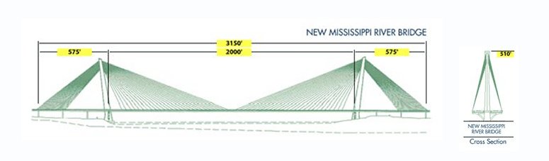 만약 건설되었다면, 최초 제안된 신규 미시시피 강 교량은 일리노이 주와 미주리 주를 연결하는 세계 기록을 경신하는 케이블지주 구조물로, 강을 가로지르는 다른 교량의 교통 혼잡을 완화하는 데 도움이 되었을 것입니다. Modjeski and Masters가 디자인하였으며, 일리노이 및 미주리 교통부에 의해 교량 유형 연구 및 제안된 횡단에 대한 초안 및 최종 설계를 수행할 수 있도록 선택되었습니다.