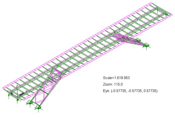 평행 및 발산하는 횡방향 보를 허용합니다. 횡방향 보들은 자동으로 구축되며 선택된 지점에 제약 방정식 또는 강체 보로 연결됩니다. 유사한 모든 횡방향 보를 동시에 구축할 수 있으며, 단일 편심 보, X 또는 K 형태의 횡방향 브레이싱(실제 편심 포함)과 같은 여러 유형이 허용됩니다. 브레이싱 부재는 조작을 위해 모듈러에서 자동으로 그룹화됩니다. |