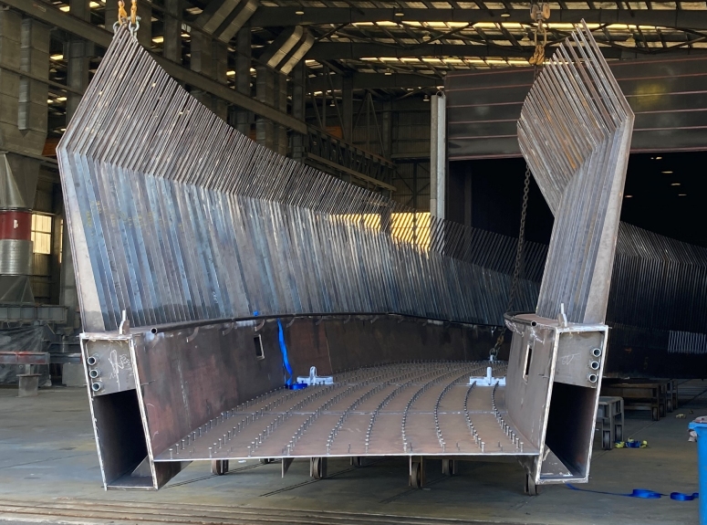 상세 비선형 모델이 두 개 생성되어 보강 강철 접합부를 해석하고 수작업 계산을 보완하였습니다. 강철 기둥 접합부에서는 교차 거더 연결, 지지 위치 및 스피커를 수용하기 위해 대형 웹 개구부에서 가해지는 집중 하중이 크기 때문에 이를 특히 중요시하였습니다.