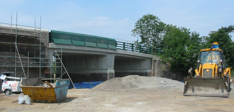 | 기존 벽돌 조적 구조물의 두 경간은 현대의 철도 차량에 대한 수직 및 수평 여유를 제공하기 위해 교체가 필요했습니다. 제안된 교체는 철도와 기존 도로 및 제방과의 인터페이스에서 요구되는 기하학적 제어 및 여유를 충족하기 위해 신중하게 설계되어야 했습니다. 또한 기차 서비스에 대한 혼잡을 최소화하기 위해 예정된 철도 점검 기간 내에 완료할 수 있는 계획이 필요했습니다. 선택된 솔루션은 북쪽 및 중앙 조적 아치를 스프링 레벨까지 제거 및 철거하는 것이며, 기존의 기초 및 남쪽 아치는 유지되고 아치 아래에 세운 인필 벽으로 영구적으로 고정되었습니다. 맞춤 제작된 프리캐스트 철근 콘크리트 포털 프레임이 새로운 두 경간의 일체형 교량의 기본 프레임을 형성하며, 이는 기존 조적 기초의 스프링 레벨에 위치하도록 설계되었습니다. 교량은 포털 유닛 상부에 복합 인사이트 콘크리트 덱을 타설하여 연속화되었습니다. |